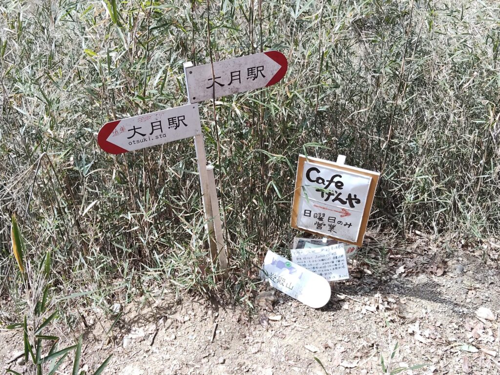 大月駅は左だけど、右の「cafe げんや」も気になる~!