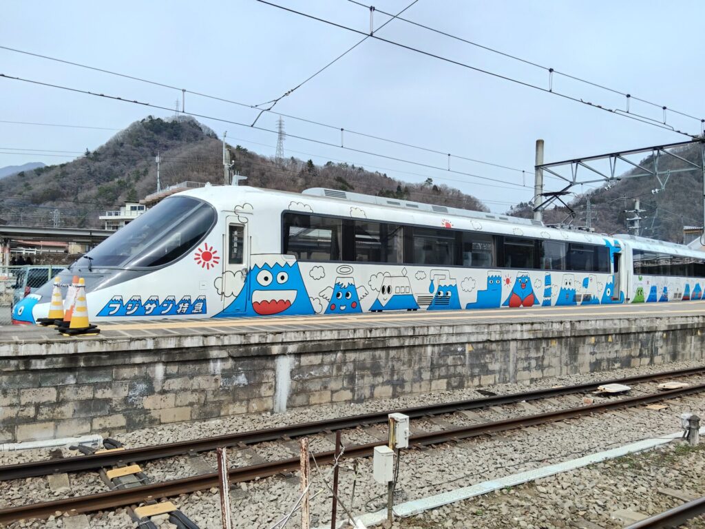 大月駅に「フジサン特急」が止まってる。