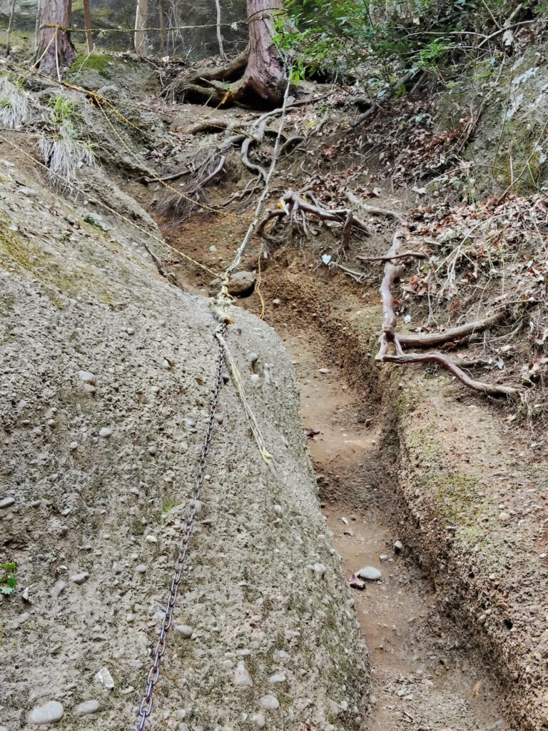 所々にロープや鎖があるのは、足元が滑るからかもね~。